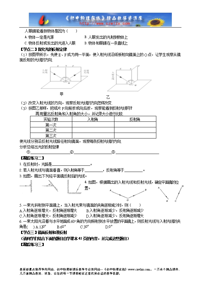 4.能利用反射定律作出反射时的光路图;知道反射中光路是可逆的。