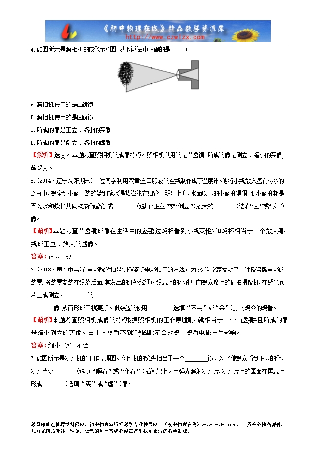 【内容简介】1.(2013?黄石中考)下列光学仪器成缩小实像的是( )