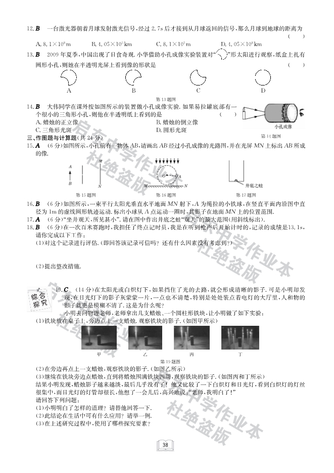 【启东中学作业本】2014-2015学年教科版八年级物理上册:第四章 在光的世界里(课时训练+单元达标检测试题,2份,pdf版无答案)