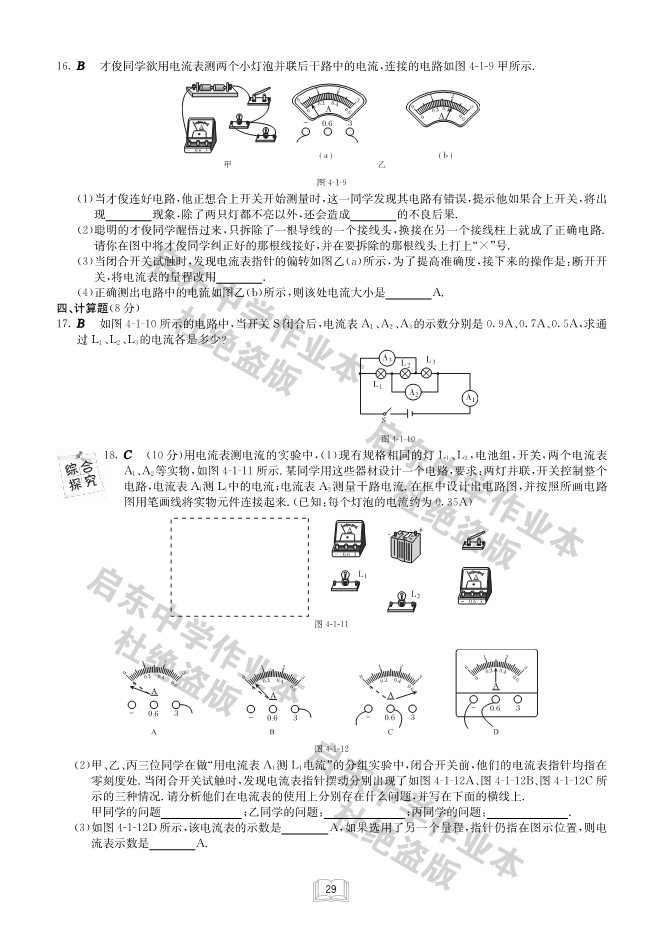 【启东中学作业本】(2014年秋)教科版九年级物理上册《第四章 探究电路》课时作业+单元检测(2份,pdf版,无答案)