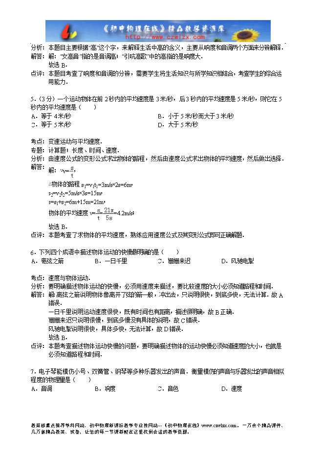 (1)声音的三个特征分别是:音调、响度、音色,是从不同角度描述声音的,音调指声音的高低,由振动频率决定;响度指声音的强弱或大小,与振幅和距离有关;音色是由发声体本身决定的一个特性;