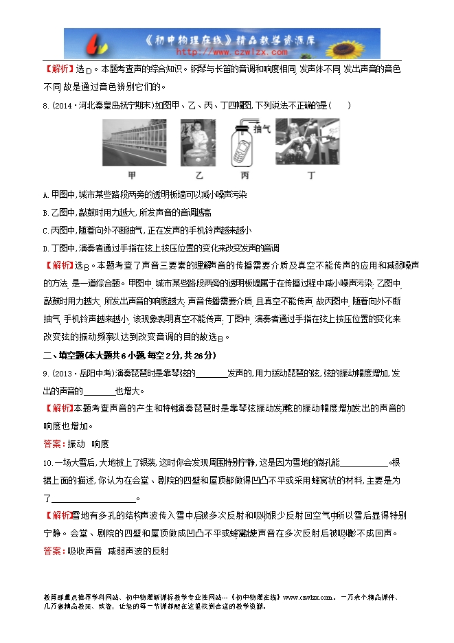 【名师推荐】2014人教版八年级物理配套《第二章 声现象》单元评价检测(含解析)