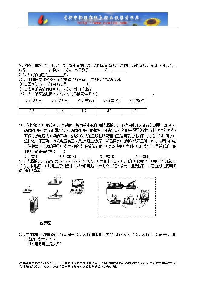 山东省无棣县第一实验学校九年级物理《16.2串、并联电路电压的规律》导学案
