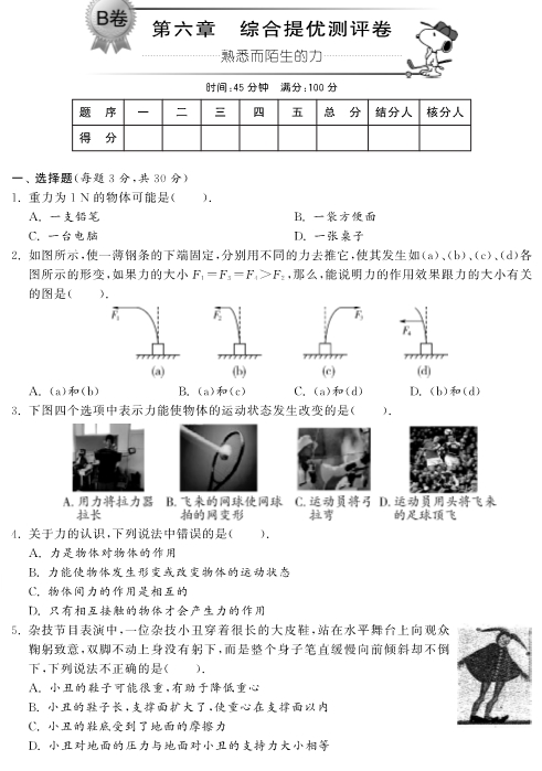3.下图四个选项中表示力能使物体的运动状态发生改变的是( ).
