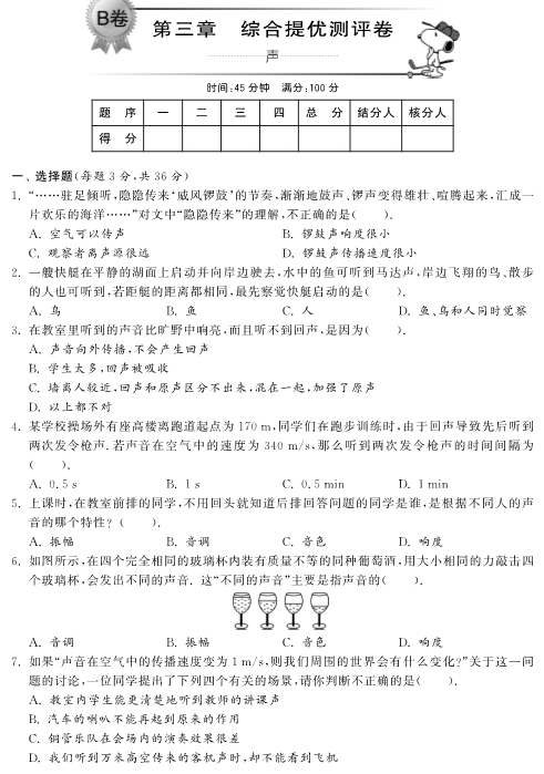 - 966(教科版)2019-2020学年八年级物理同步单元双基双测AB卷:第03章 声(B卷基础篇)