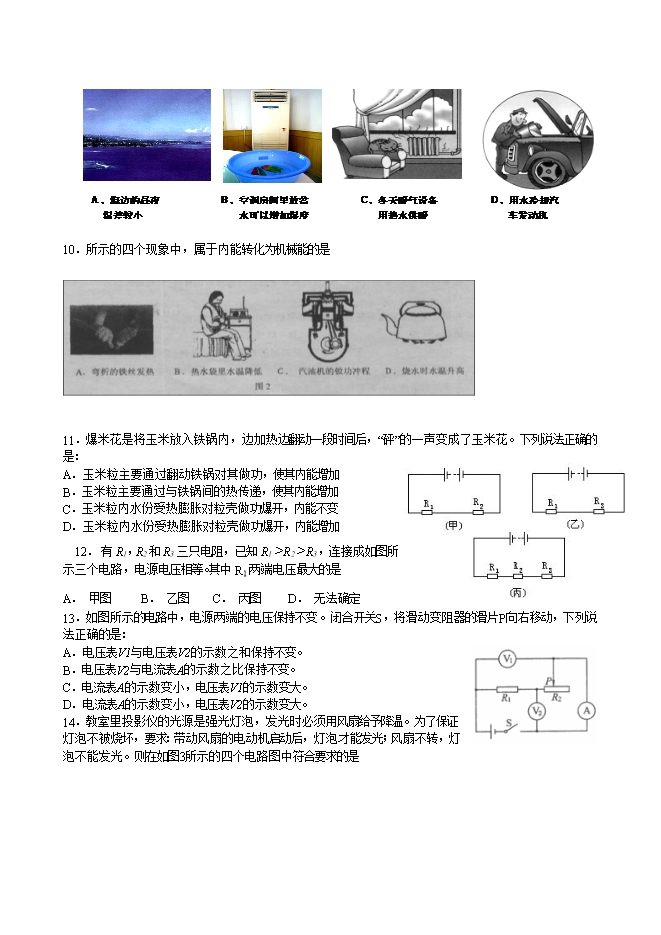 - 16862014~2015学年度武汉市蔡甸区部分学校九年级调研测试物理试题(附答案)