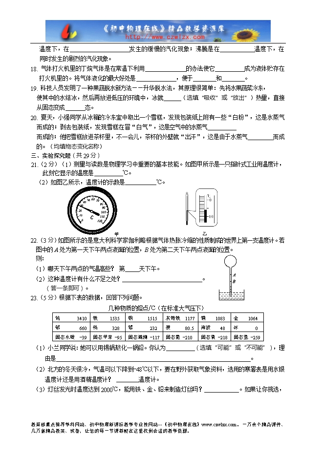 人教版八年级物理第三章《物态变化》单元检测题及答案1