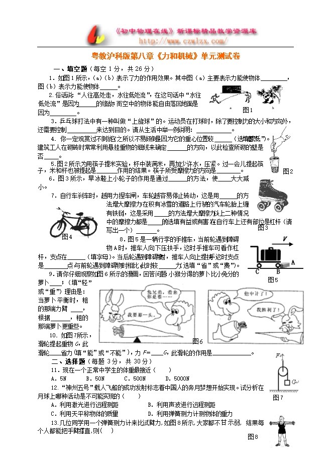- 下一份试卷:粤沪版八年级《第六章 力和机械》单元检测题(B卷)及解答