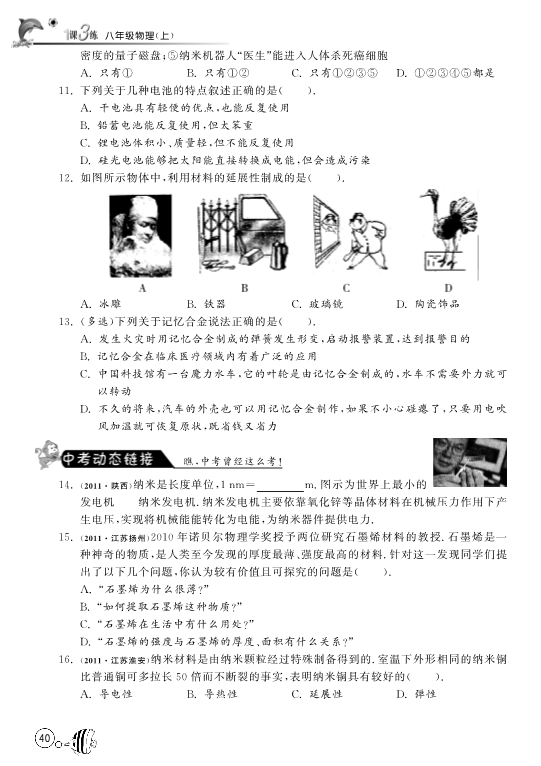 【1课3练】北师大版八年级物理《2.4新材料及其应用》课前自主梳理+课堂合作研习+课后拓展探究(pdf版)