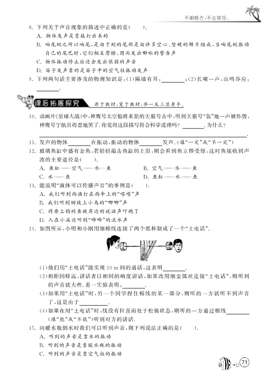 【1课3练】北师大版八年级物理《4.1声音的产生与传播》课前自主梳理+课堂合作研习+课后拓展探究(pdf版)
