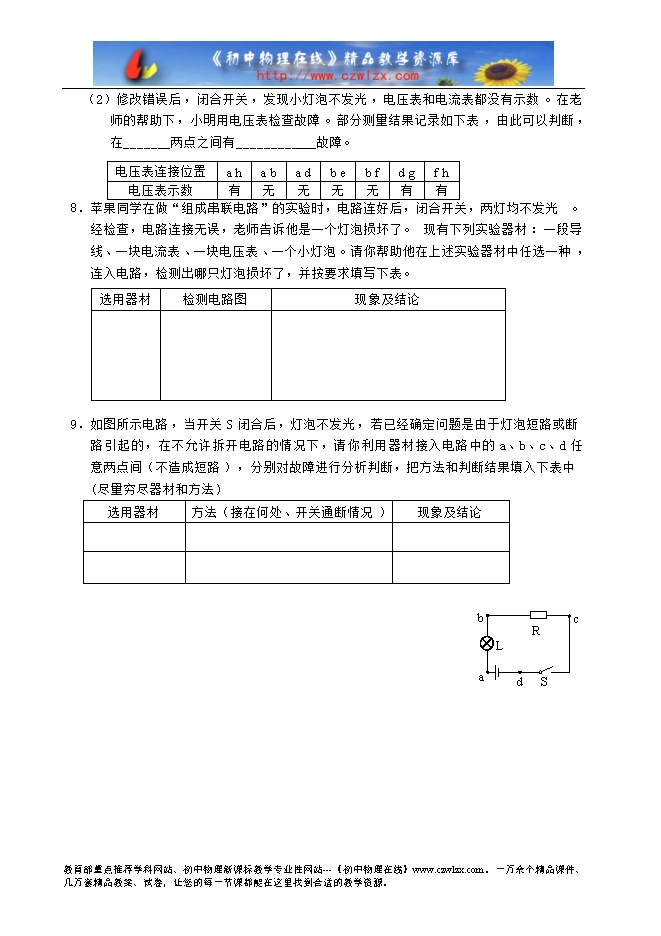 3.如图2所示的电路,当开关S闭合后,两个灯泡均不发光(灯泡完好),电流表的指针几乎不动,但电压表的指针有明显偏转。该电路故障可能的是??? 。