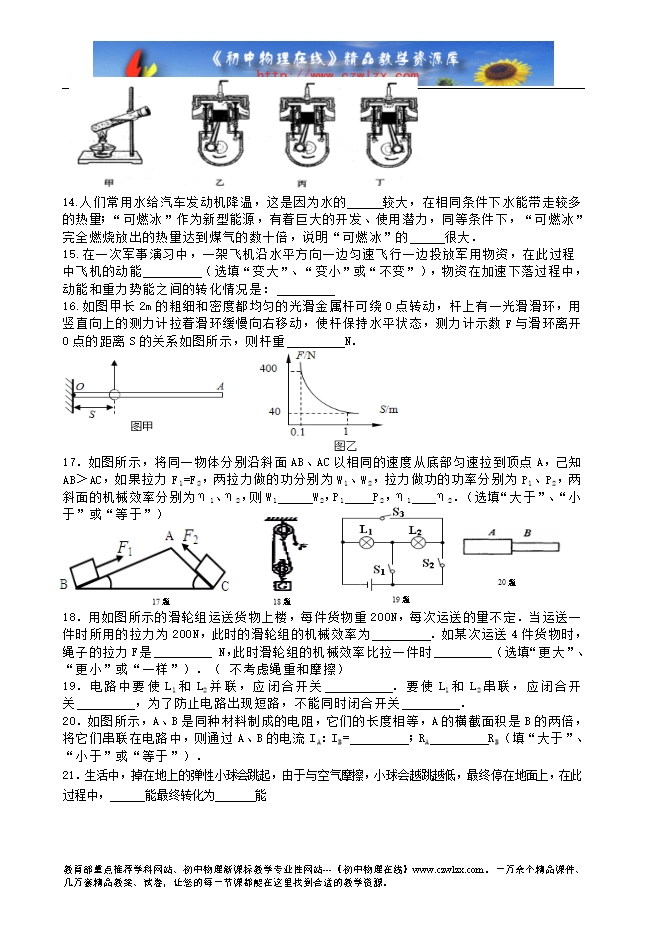- 12322014秋九年级第一学期期中物理重点题练习及答案(word版,共21页)