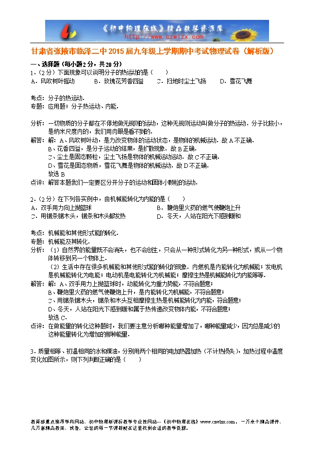 - 12322014秋九年级第一学期期中物理重点题练习及答案(word版,共21页)