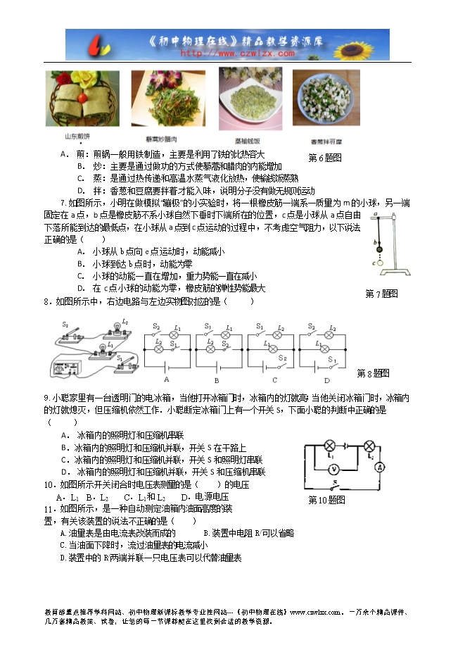 6.《舌尖上的中国2》聚焦于普通人的家常菜,让海内外观众领略了中华饮食之美.如图所示,通过煎、炒、蒸、拌烹调的四种美食中所包含的物理知识,认识正确的是( )