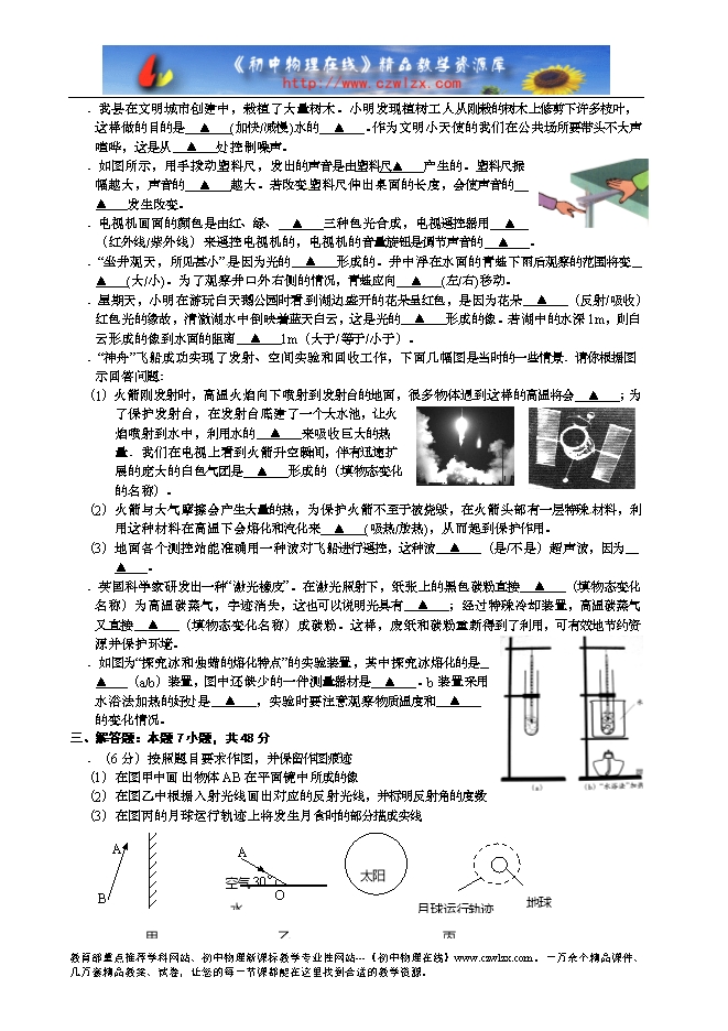 - 2012安徽省无为三中2014~2015学年度第一学期期中质量检测八年级物理试卷(沪粤版,无答案)
