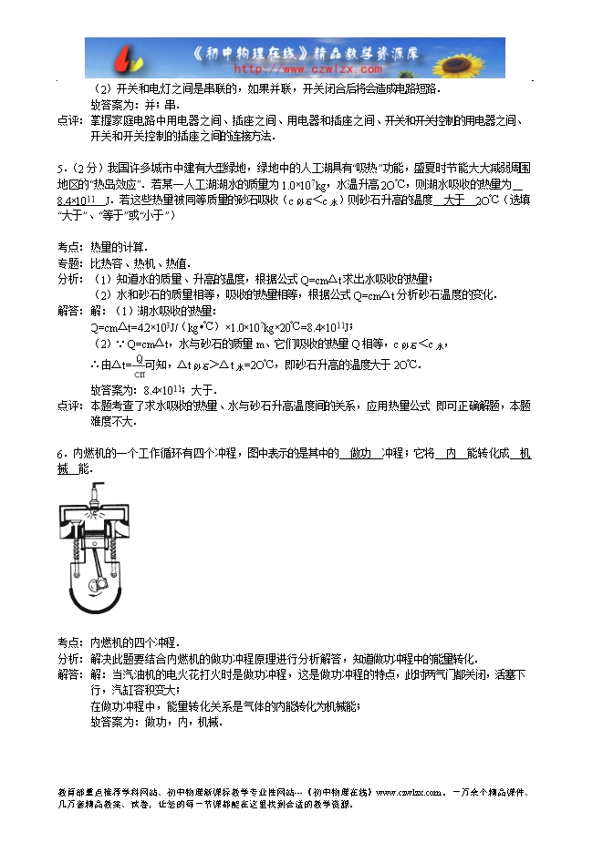 (2)开关和电灯之间是串联的,如果并联,开关闭合后将会造成电路短路.