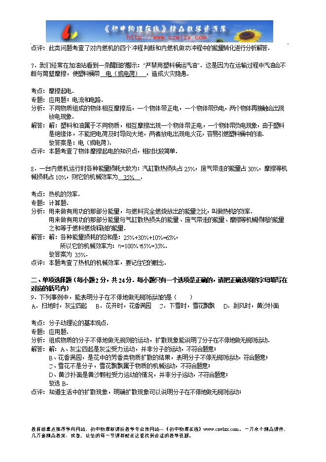 点评: 主要是考查:温度对扩散现象的影响,温度越高扩散现象越明显.是中招的热点.
