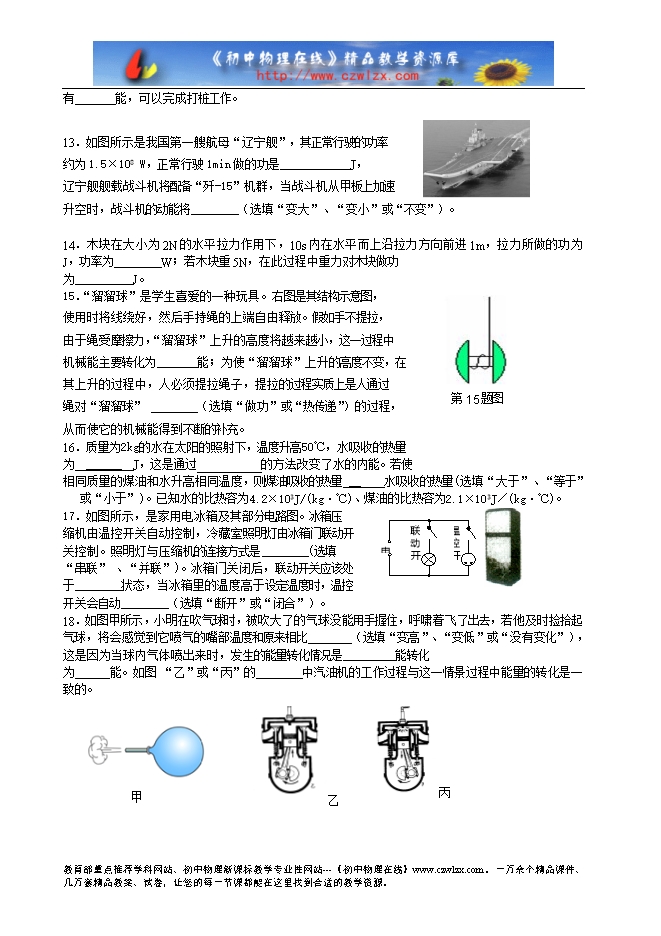 - 1615辽宁省锦州市第四中学2015届九年级第一学期期中考试物理试题(北师大版,附答案)