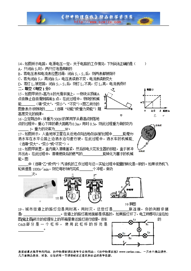 江苏省无锡市第一女子中学2015届九年级上学期期中考试物理试题及答案