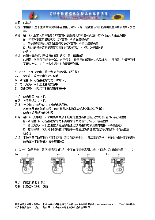 点评: 本题考查了学生对常见物态变化的分析,抓住物质前后状态的变化是解题的关键.