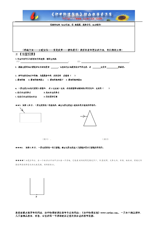 3.回顾光的 反射光路图,画出随堂中的 光的折射光路图并标注“三线两角‘。
