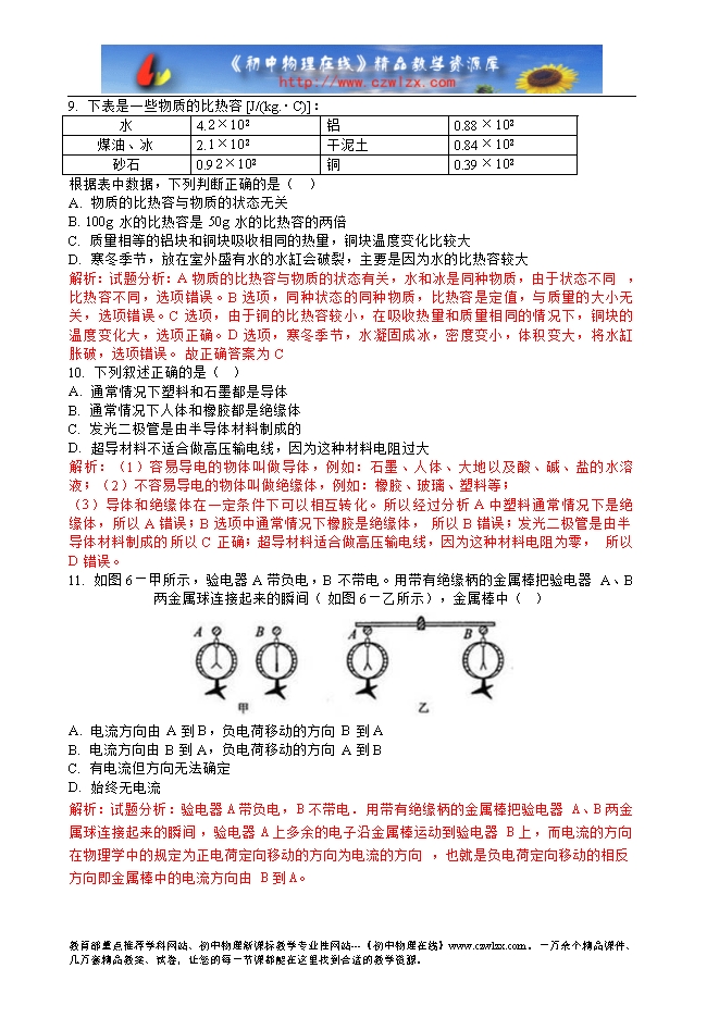解析:“热”有不同含义,有“温度”“内能”“热量”等多种含义,温度表示物体的冷热程度;内能表示物体具有内能;热量是热传递过程中吸收或放出热量的多少.沸腾的水水很热都是指温度高;物体吸热是指吸收热量。