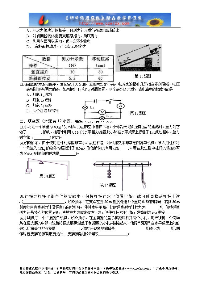 江苏省南京市江宁区湖熟片2015届九年级上学期期中学业水平检测物理试题及答案