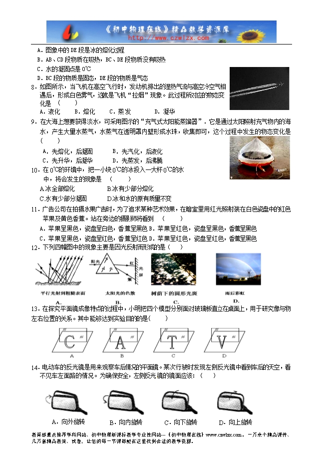 C .擦在皮肤上的酒精马上干了 D.早晨,室外大雾弥漫