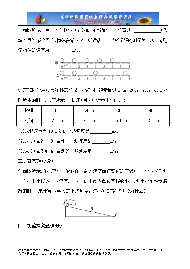2.某同学为测自己步行的平均速度,他在400 m跑道的起点处 从10:10开始计时,走到终点时,表针指到10:20,则该同学在此段的平均速度是 ( )