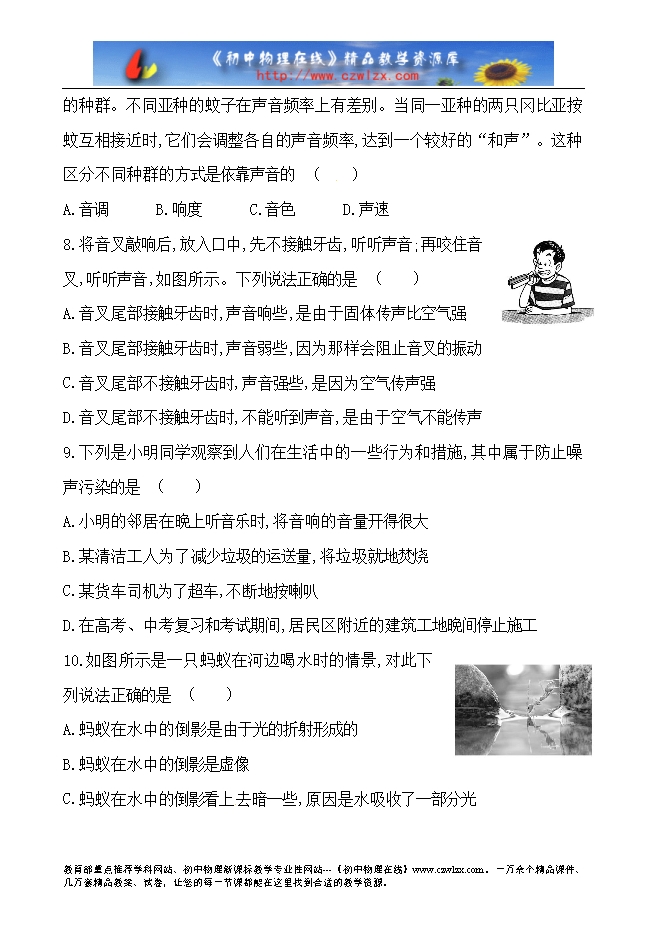 3.水无常形,变化万千。图中所示的各自然现象,在形成过程中需要吸收热量的是 ( )