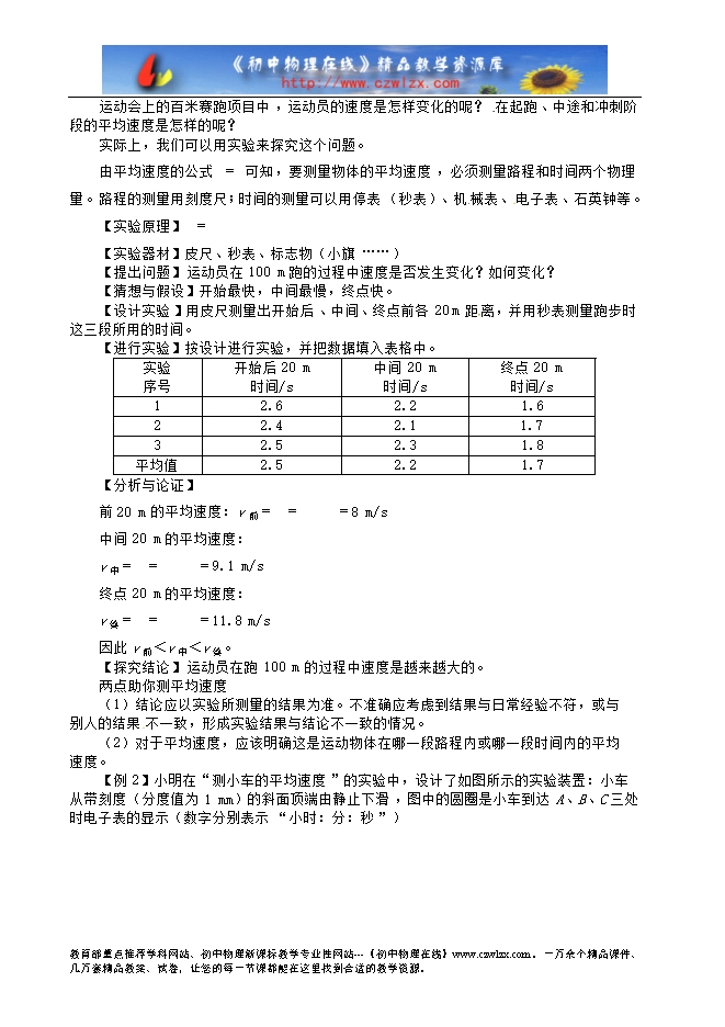- 1887北师大版八年级物理高效课堂导学案:3.4平均速度的测量