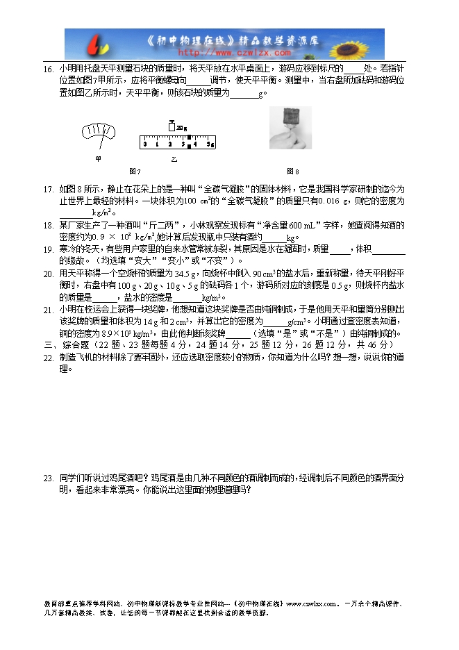 - 1802022-2023学年度沪科版八年级物理培优练习:第5章 质量与密度(附答案)