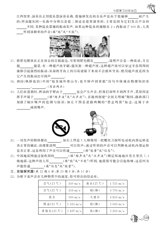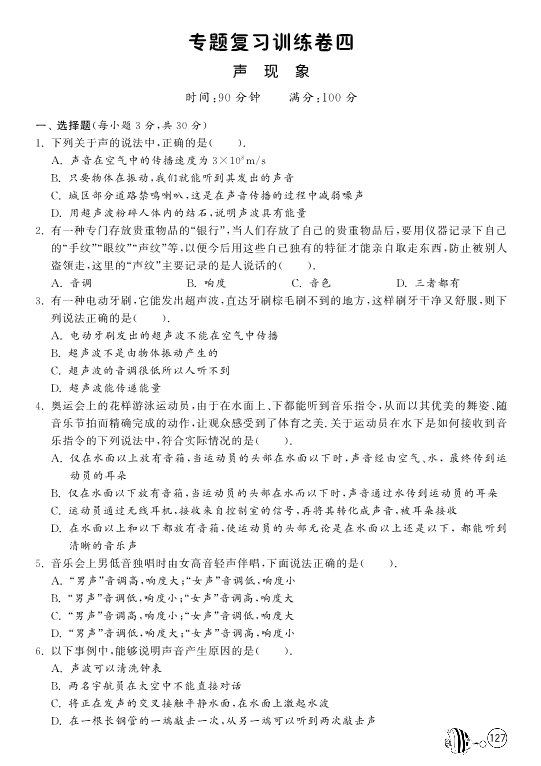 【1课3练】北师大版八年级物理《第四章 声现象》专题复习训练卷(pdf版)