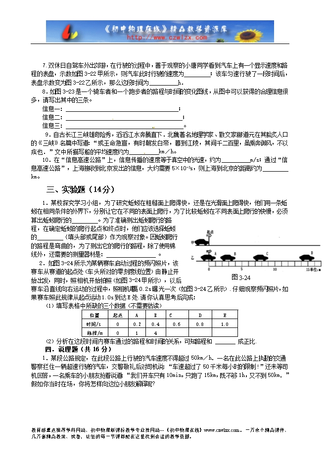 7.甲、乙两物体的速度之比是3︰1,它们通过的路程之比是4︰3,则甲、乙两物体的运动时间之比是( )