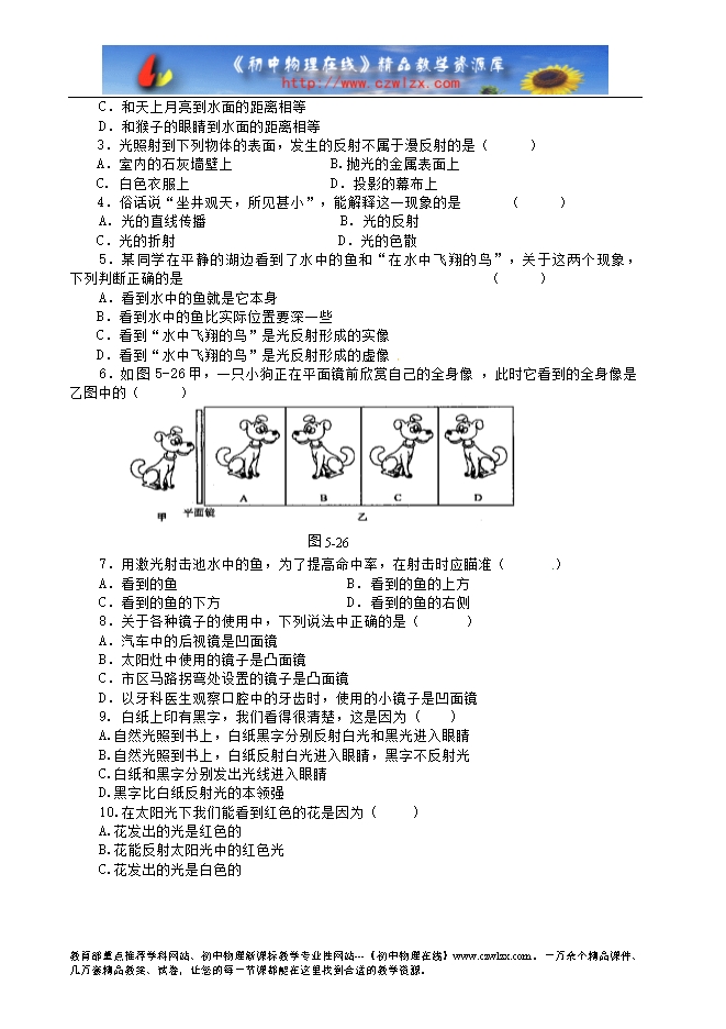 北师大版八年级物理《第五章 光现象》单元测试题2(无答案)