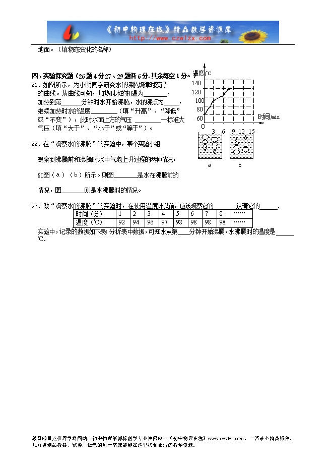 3.当登山队员到达珠穆朗玛峰峰顶时,他们用普通锅烧开了一壶水,则此时水的温度应该 ( )