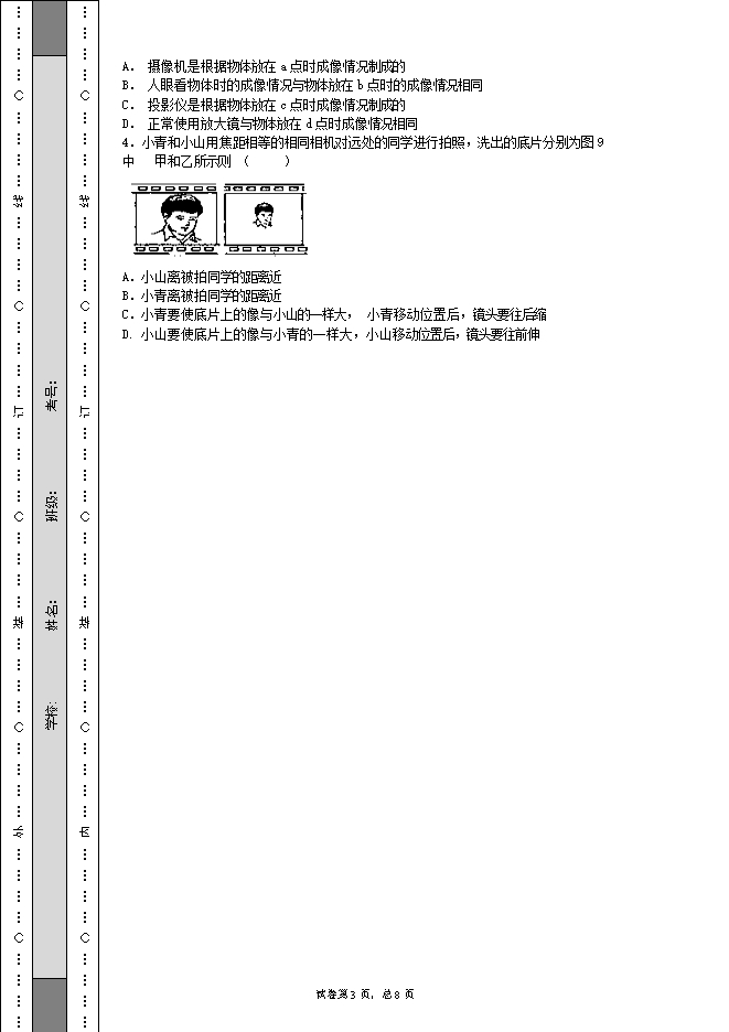 - 895山东省滕州市滕西中学八年级上学期物理期末考试试卷(无答案)