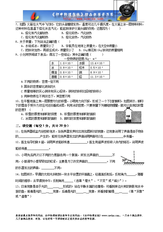 贵州省安顺市2014-2015学年度第一学期期末教学质量检测八年级物理试卷及答案