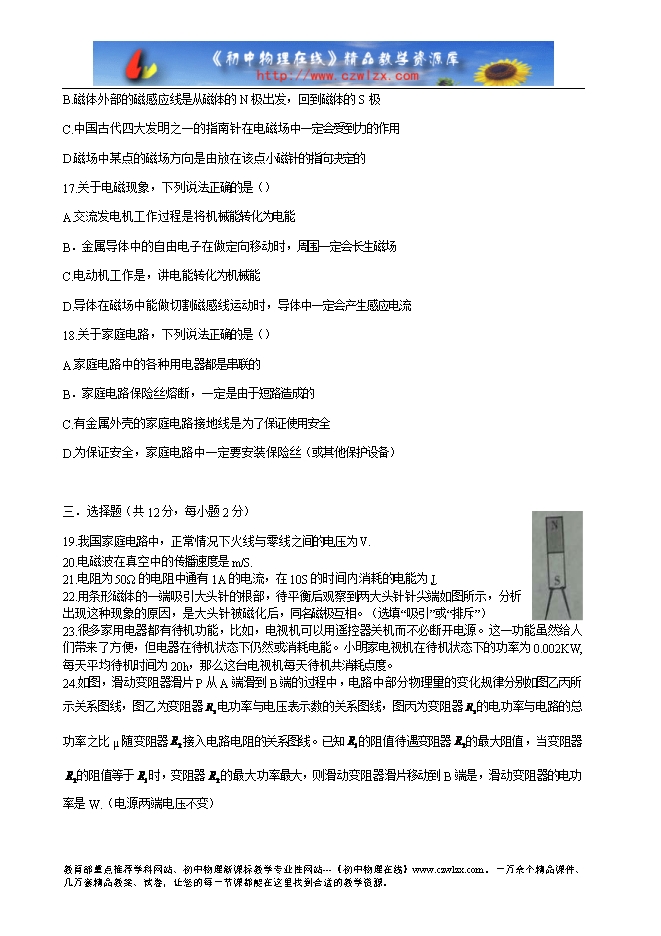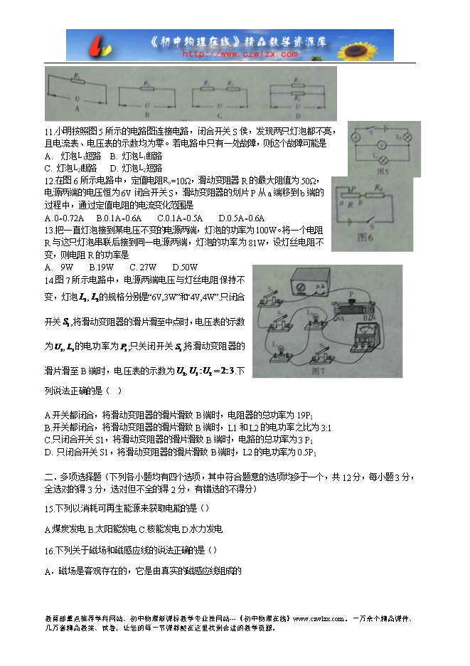 6.在图2所示的家庭电路中,插座、螺口灯泡(及其开关)的连线正确的是