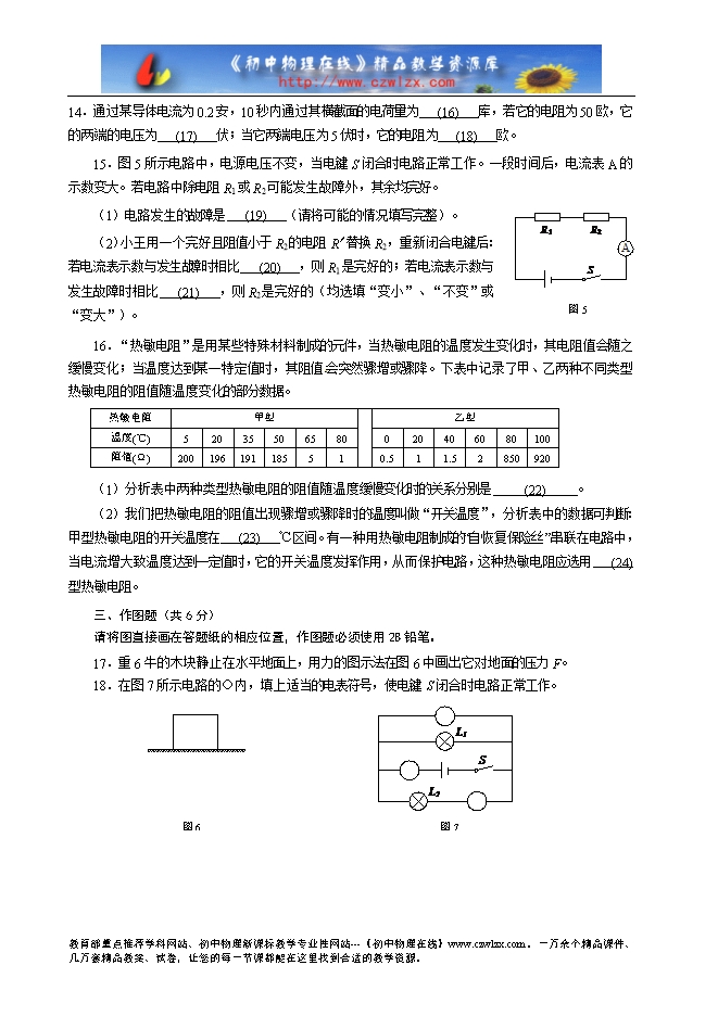 考生注意:本试卷物理部分含五个大题。答题时,考生务必按答题要求在答题纸规定的位置上作答,在草稿纸、本试卷上答题一律无效。一、选择题(共16分)