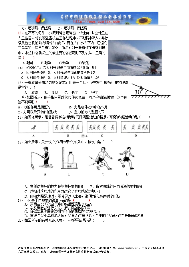 淮北市非凡学校2014-2015学年第一学期期末考试八年级物理试题及答案