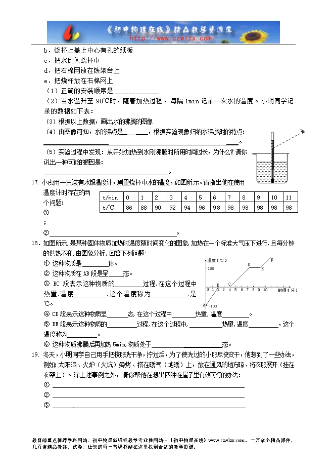 内蒙古呼和浩特市敬业学校八年级物理寒假作业3—物态变化