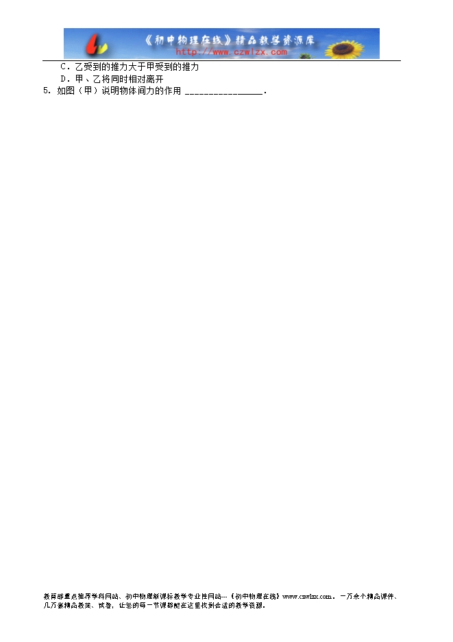 4、 力的作用是相互的:当甲物体对乙物体施力时,乙物体同时也对甲物体_________,因此,力的作用是__________