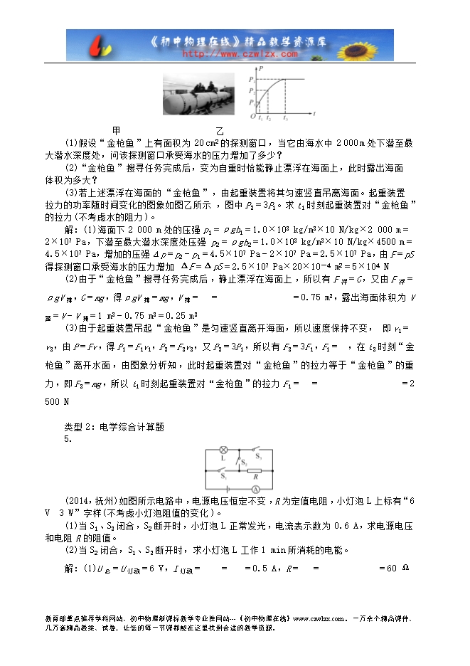 【聚焦中考】2015年中考物理复习例题精选微专题十:中考压轴题(附答案)