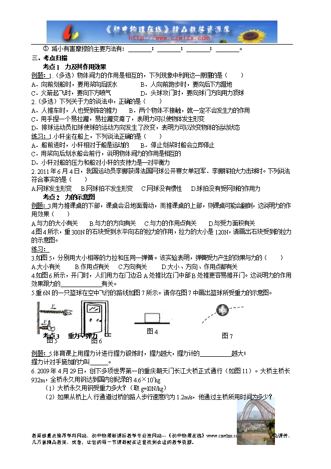 1.认识力的作用效果。能用示意图描述力。会测量力的大小。