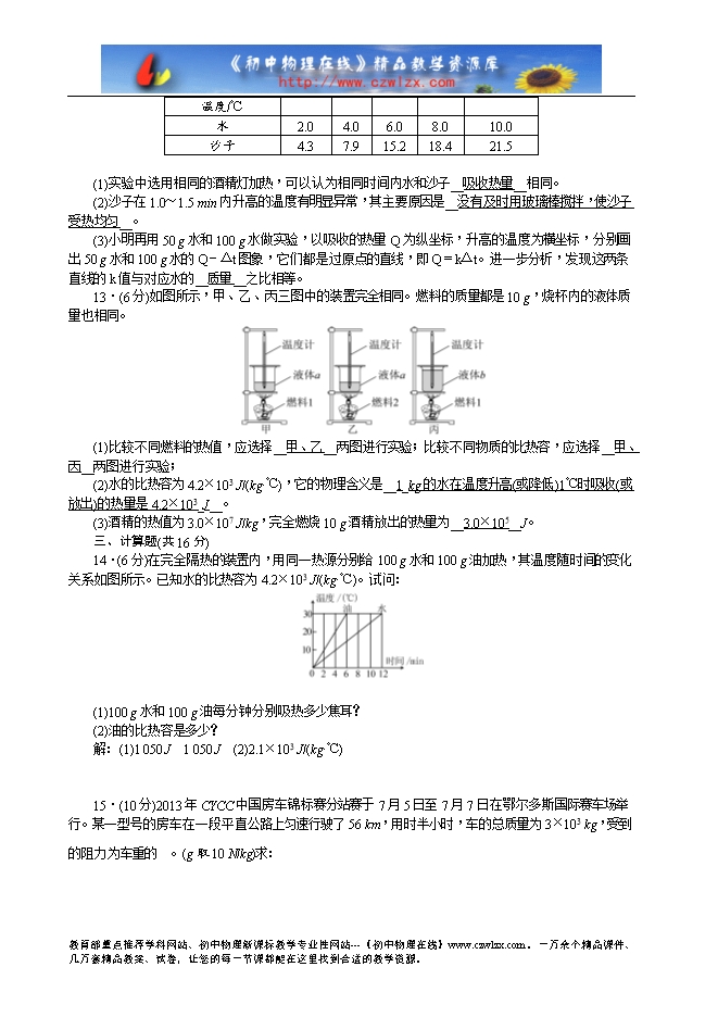 4.用相同的加热装置给质量相等的甲、乙两种液体同时加热,两种液体的温度随时间的变化如下表所示。由数据比较两种液体的比热容(A)