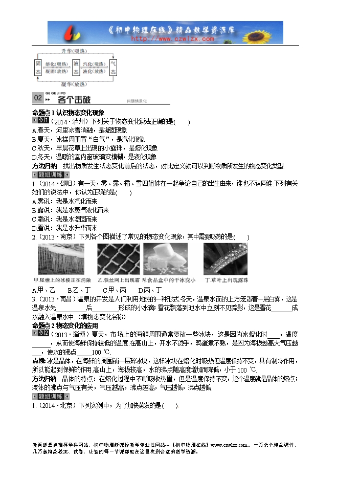 湖北省宜城市刘猴中学2015年中考物理复习考点21讲:第4讲 物态变化(学案,附答案)