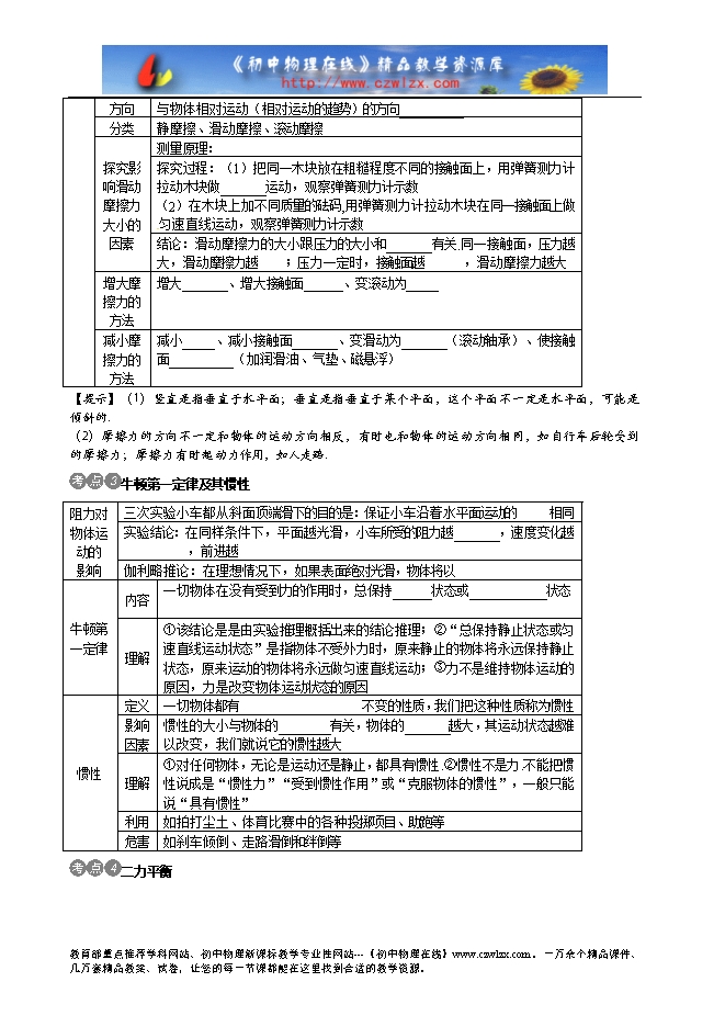 力的作用效果 ①力可以改变物体的______;②力可以改变物体的_______