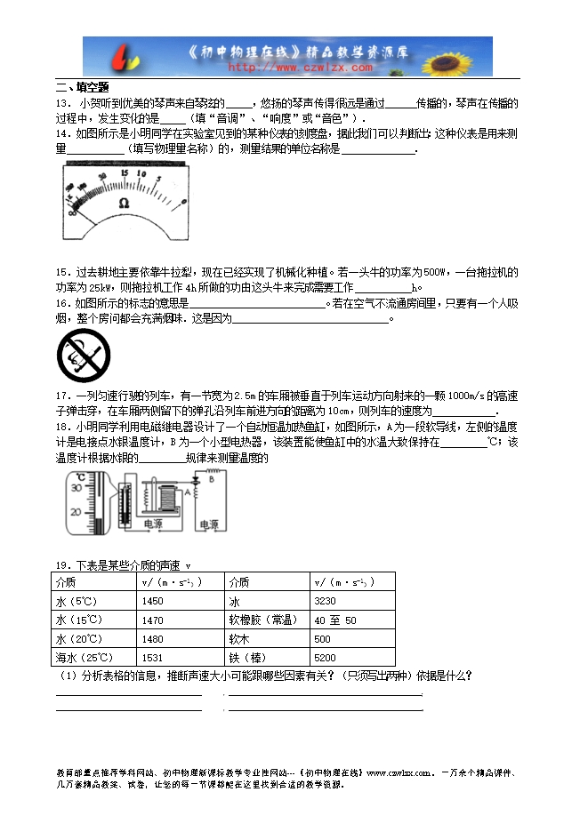 - 下一份试卷:2015年中考物理模拟试卷及答案(七)