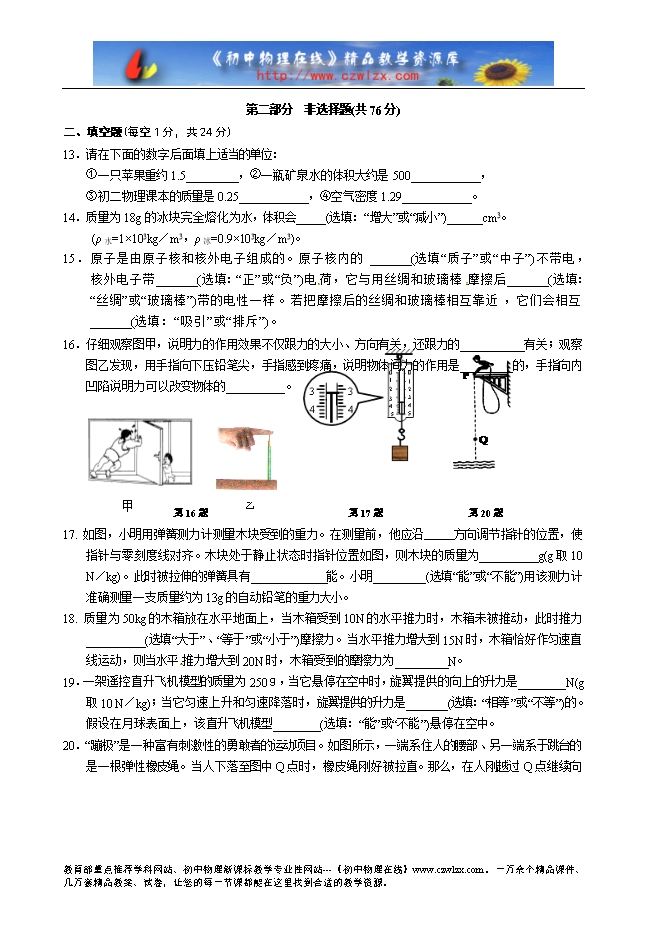 - 2349湖北省枣阳市2015-2016学年八年级下学期期中考试物理试题及答案